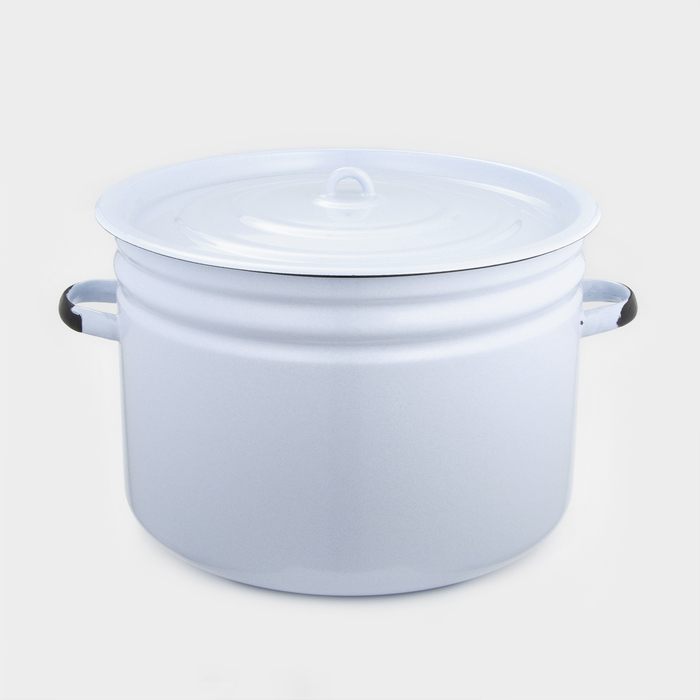 )Объемный бак из эмалированной стали - отличают особенности, которые сделают его незаменимым помощником на долгие годы. Такое изделие прекрасно подходят для приготовления больших объемов пищи. Рекомендуется применять неабразивные моющие средства. Избегайте ударов и падений посуды.