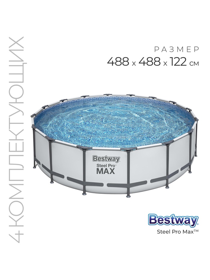 УЦЕНКА Бассейн каркасный, 488×122 см, фильтр-насос, лестница, тент, 5612Z Bestway