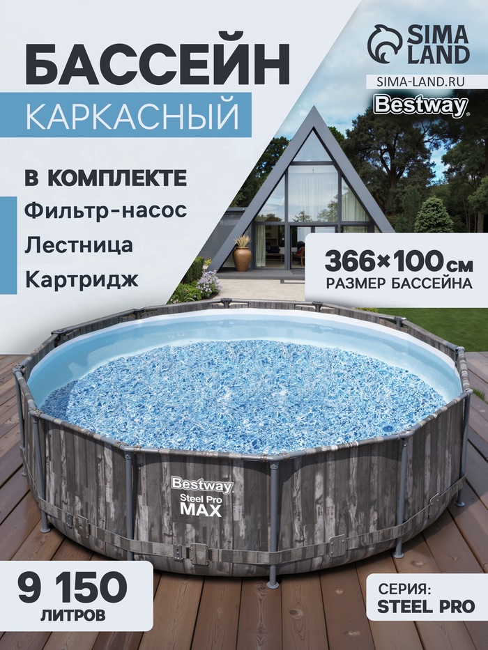 УЦЕНКА Бассейн каркасный Steel Pro Max, 366×100 см, фильтр-насос, лестница, круглый, 5614X Bestway