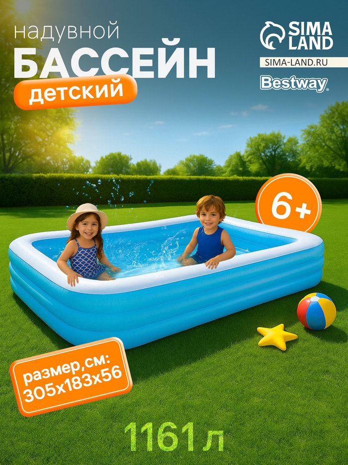 УЦЕНКА Бассейн надувной, 305×183×56 см, от 6 лет, 54009 Bestway