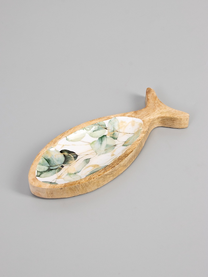 УЦЕНКА Блюдо в форме рыбки «Листья» дерево манго 25.5×10×2 см