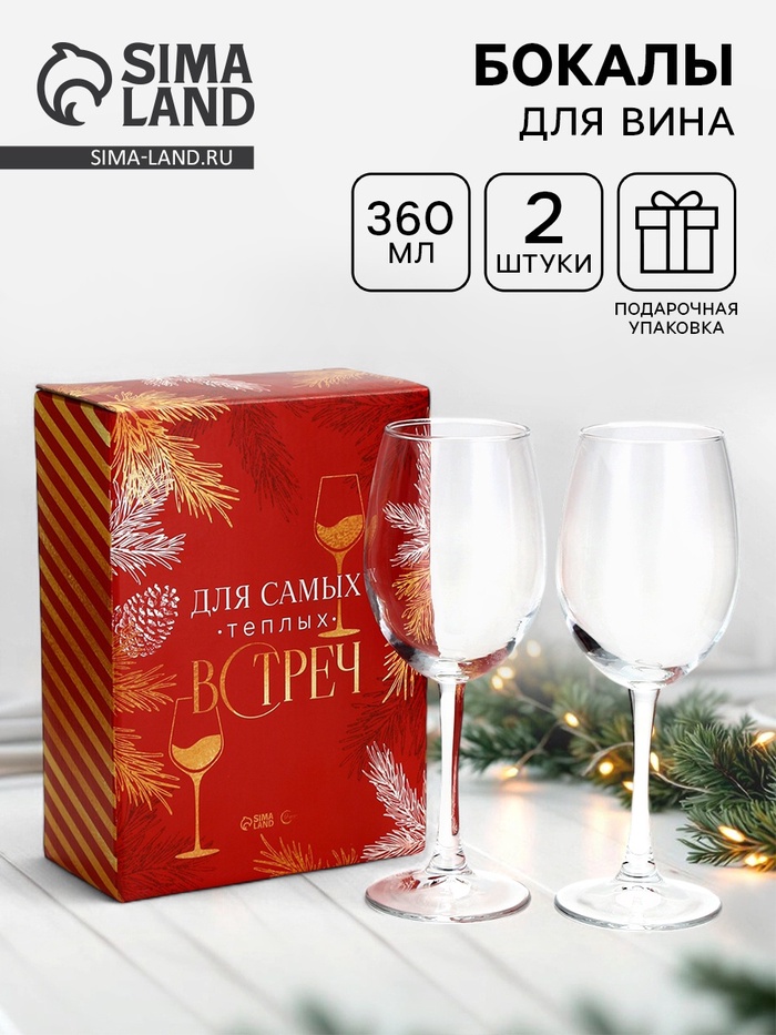 УЦЕНКА Бокалы для вина новогодние «Новый год для двоих», 360 мл, набор