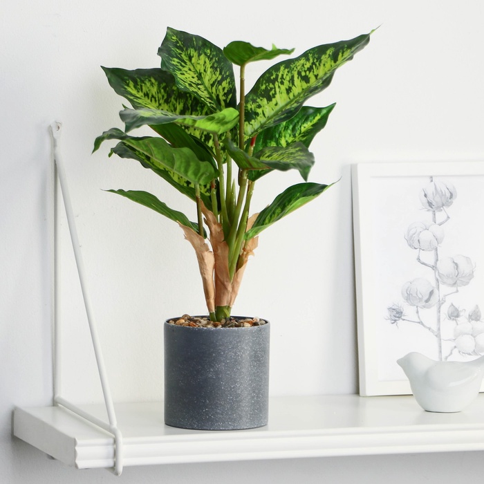 Добавьте зелёный акцент в интерьер без лишних хлопот. Искусственное растение с выразительной листвой станет стильным украшением дома или офиса, создавая атмосферу уюта и свежести круглый год. Этот компактный зелёный элемент легко впишется в любой дизайн, оживляя пространство без необходимости ухода.