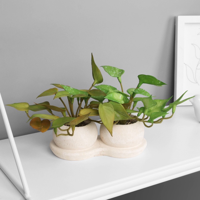 Создайте уют и стиль в вашем интерьере! Искусственный Сингониум в декоративном горшке – это изысканное решение для тех, кто хочет добавить в дом зелень без лишних хлопот. Эта двойная композиция высотой 12 см станет идеальным украшением вашего дома или офиса.