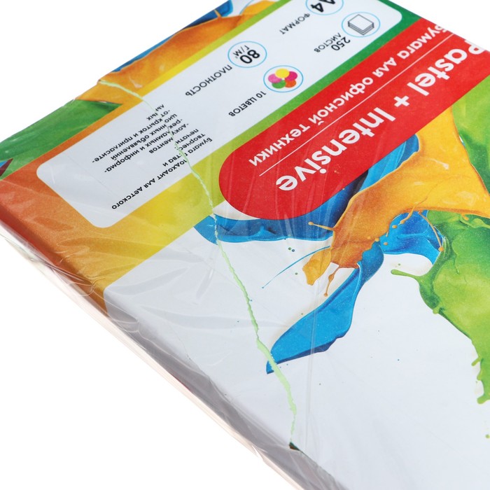 УЦЕНКА бумага цветная А4 250 л Calligrata Пастель + интенсив МИКС 10цв 80 г/м², АМБАЛАЖ