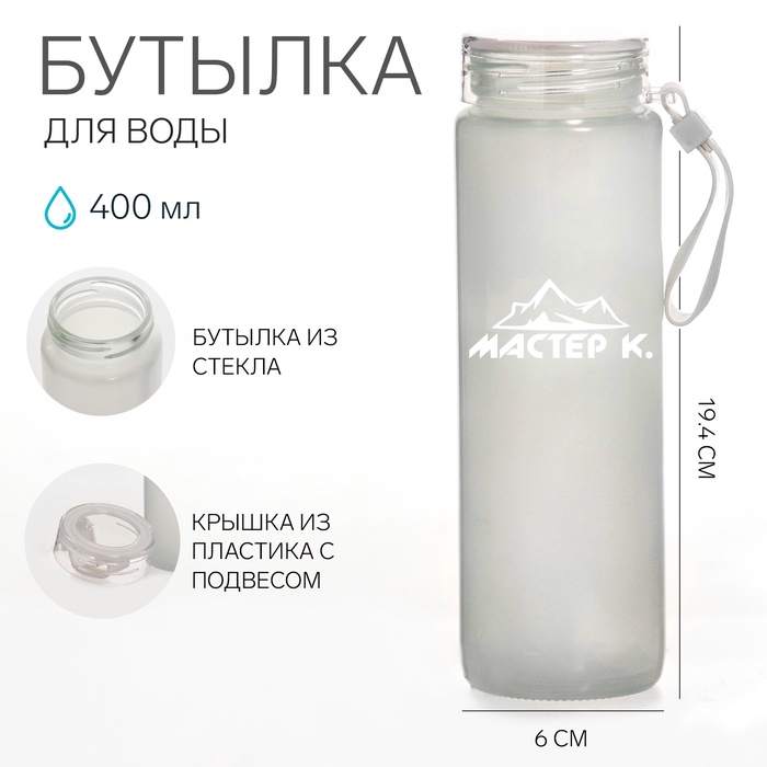 УЦЕНКА Бутылка для воды спортивная «Мастер К», 400 мл, 19.4×6 см, стеклянная