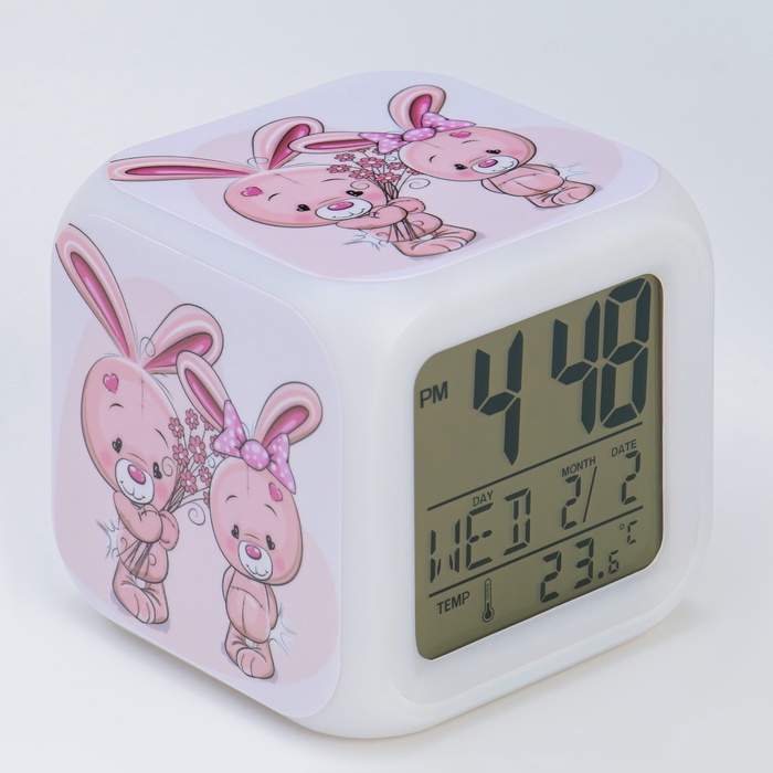 УЦЕНКА Часы - будильник электронные «Зайка», детские, настольные, с подсветкой, 8×8 см, ААА
