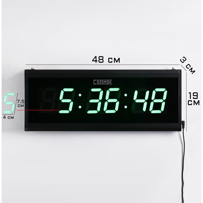 УЦЕНКА Часы электронные настенные «Соломон», 48×19×3 см, цифры зеленые 7.5×4 см