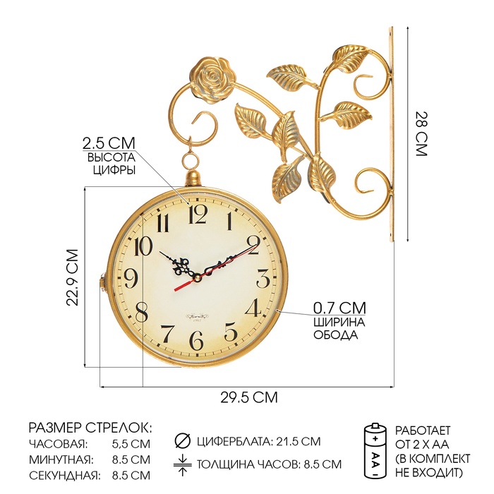 УЦЕНКА Часы настенные двусторонние «Финетти», на подвесе, d=21.5 см, 28×29.5 см