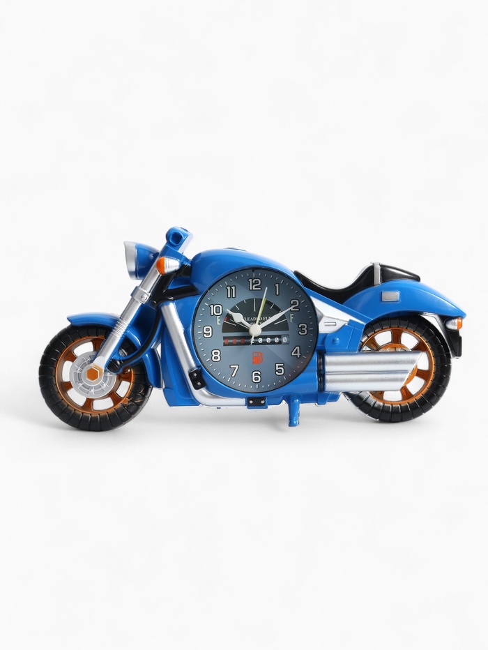 Часы с будильником представлены в ретро дизайне в форме мотоцикла, они отлично впишутся в ваш интерьер. Интерьерные часы станут прекрасным декором для дома и дачи, их можно поставить как на прикроватную тумбочку в спальне, детской комнате, гостиной так и на стол или на комод в зале, холле или на кухне. Будильник настольный имеет кварцевый механизм, который гарантирует высокую точность хода. Часы настольные обладают громким будильником, ребенку и вам будет комфортно просыпаться, на работу и в школу. Будильник на батарейках не требует частой замены батареек благодаря экономичному механизму.