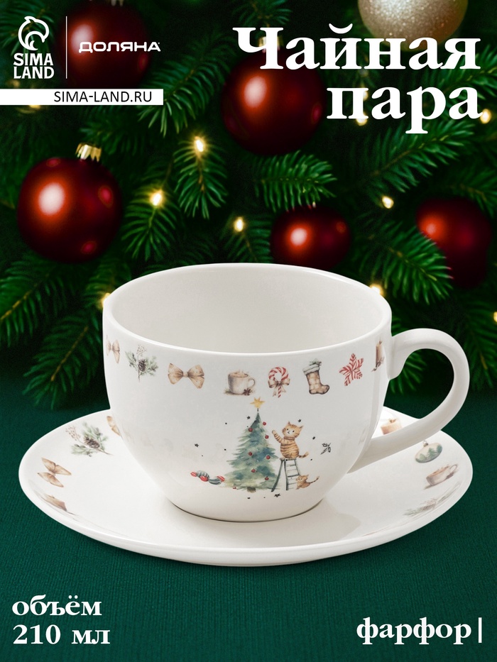 УЦЕНКА Чайная пара «Волшебный праздник», чашка 210 мл, блюдце 15 см