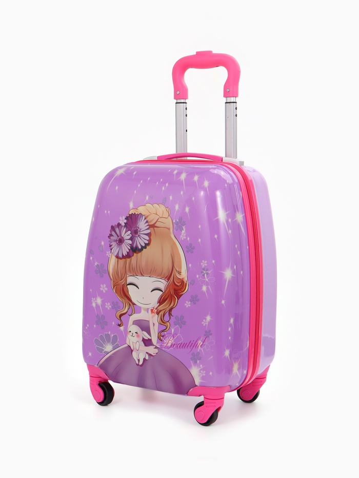УЦЕНКА Чемодан дет Девочка 18", 30×21×43 см, отд на молнии, 4 колеса, сиреневый