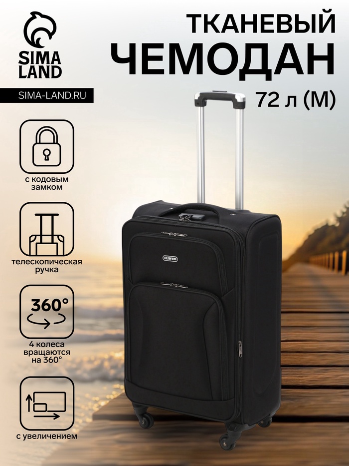 УЦЕНКА Чемодан на колёсах маленький 72 л (M), на молнии, с увеличением, кодовый замок, 4 колеса, чёрный