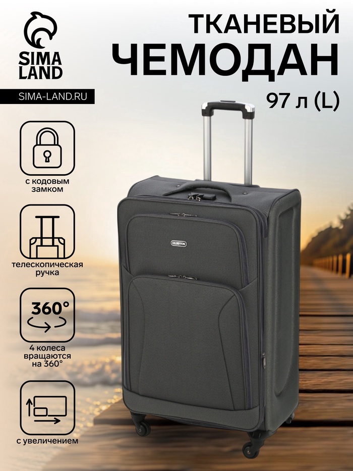 УЦЕНКА Чемодан на колёсах маленький 97 л (L), на молнии, с увеличением, кодовый замок, 4 колеса, серый