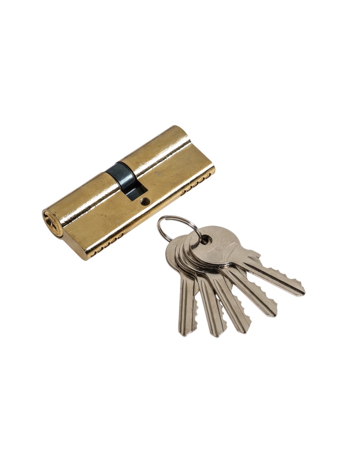 Удлинённая конструкция в классическом стиле! Цилиндр для замка 80 мм с английским ключом — это механизм для замков с глубокой посадкой. Золотистое покрытие дополняет дверную фурнитуру в тёплых тонах.