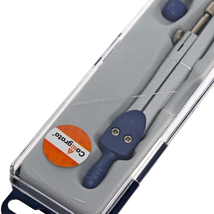 УЦЕНКА Циркуль металлический с запасными грифелями, в пластиковом пенале