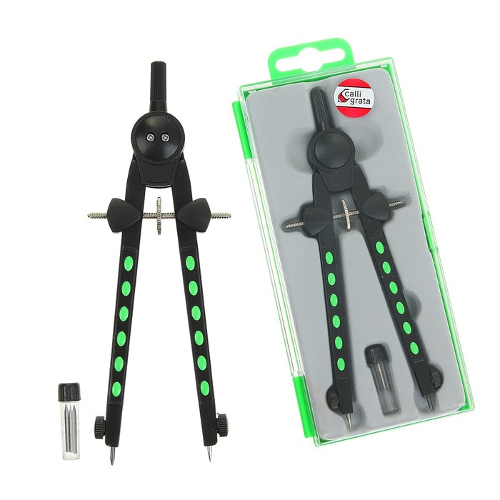УЦЕНКА Циркуль металлический в пластиковом пенале, с запасными грифелями