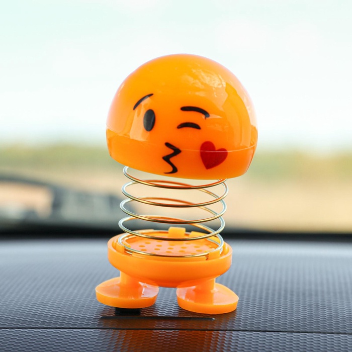УЦЕНКА Смайл на пружинке, на панель в авто, сердечко, желтый