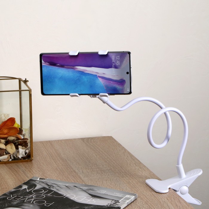 УЦЕНКА Держатель - прищепка, гибкий, регулируемый, для смартфона 3-7", 80 см, ширина держателя 12 см, белый