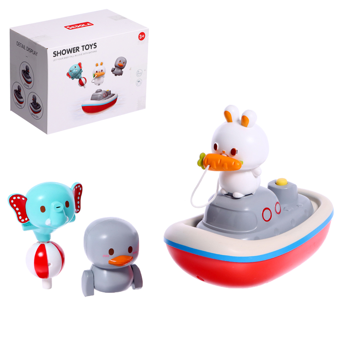 УЦЕНКА Детский фонтанчик для ванны «Зверята на кораблике», 3 насадки, работает от батареек