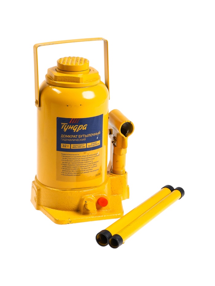 )Надежный инструмент для тяжелых задач! Гидравлический бутылочный домкрат ТУНДРА – верный помощник в работе с грузами. Модель с двумя клапанами эффективно поднимает до 32 тонн, гарантируя стабильность и безопасность процессов.