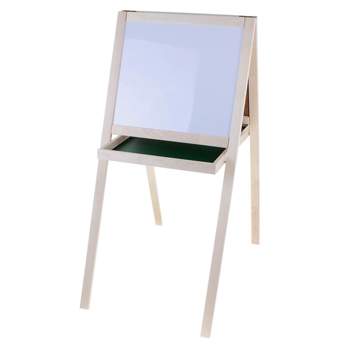 Комбинированная доска для рисования поможет ребёнку при подготовке к школе и пригодится первокласснику для выполнения домашних заданий. Мольберт состоит из 2 половинок и сочетает магнитную сторону и деревянную поверхность. Обе части соединяются поддоном, на котором удобно хранить канцелярские принадлежности.