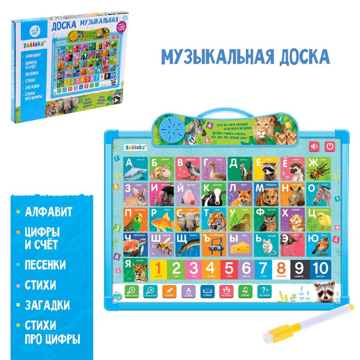 В игровой форме малыш изучит алфавит, счёт, познакомится с животными, послушает стишки про цифры и весёлые песенки.