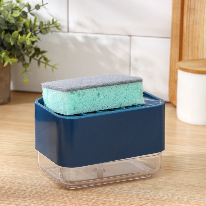УЦЕНКА Дозатор для моющего средства с подставкой для губки, губка в комплекте, синий
