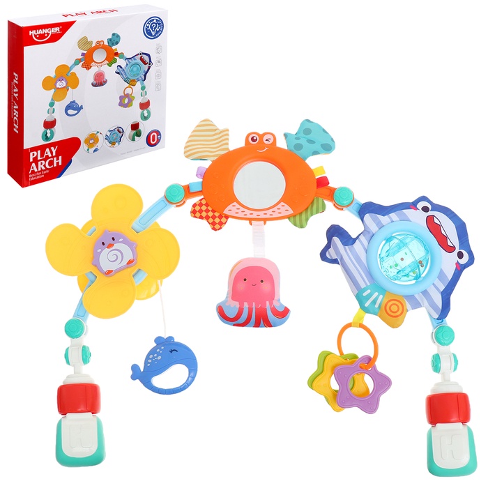 )Яркая и развивающая дуга «Подводный мир» — это настоящее морское приключений для вашего малыша! Она станет отличным компаньоном в кроватке или коляске. Дуга длиной 90 см легко крепится к любым поверхностям и оснащена множеством интересных элементов для игры.