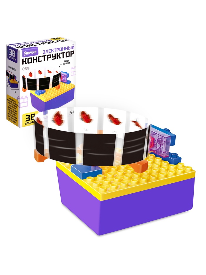 Электронный конструктор «Иллюзии» поможет ребёнку самостоятельно создать электронное устройство для оживления картинок! Магнитные волны, образующиеся в устройстве, заставляют ветряк крутиться. На ветряке будут установлены картинки. Благодаря этому получится создать оптическую иллюзию и анимацию человечка и полёта бабочки.