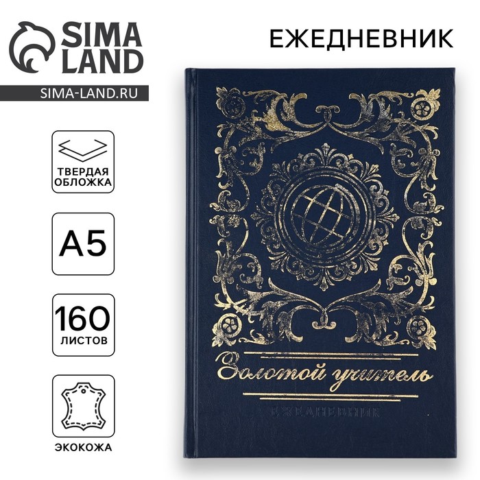УЦЕНКА Ежедневник недатированный, А5, 160 л., твёрдая обложка, кожзам «Золотой учитель»