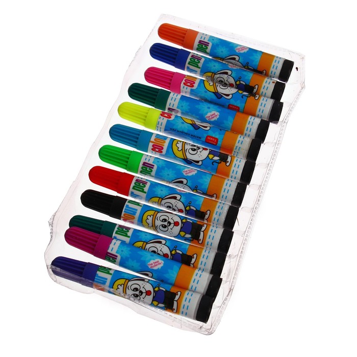 Фломастеры 12цв. МИНИ – специальные фломастеры, разработанные для удобства самых маленьких начинающих художников. Чернила легко отстирываются с различных типов ткани. Специальный пишущий узел выдерживает даже сильное нажатие и сохраняет свою форму в течение всего периода использования.
