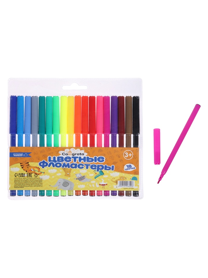 Набор фломастеров Calligrata содержит 18 ярких и насыщенных цветов. Вентилируемый колпачок обеспечивает безопасное рисование для ребенка . Идеально подходят для детей от 3-х лет и для тех, кто только начинает свой творческий путь. Фломастеры состоят из пластика, чернил. Упаковка представлена в виде PVC пакета. Благодаря фломастерам Вы сможете воплотить все свои творческие фантазии в реальность.