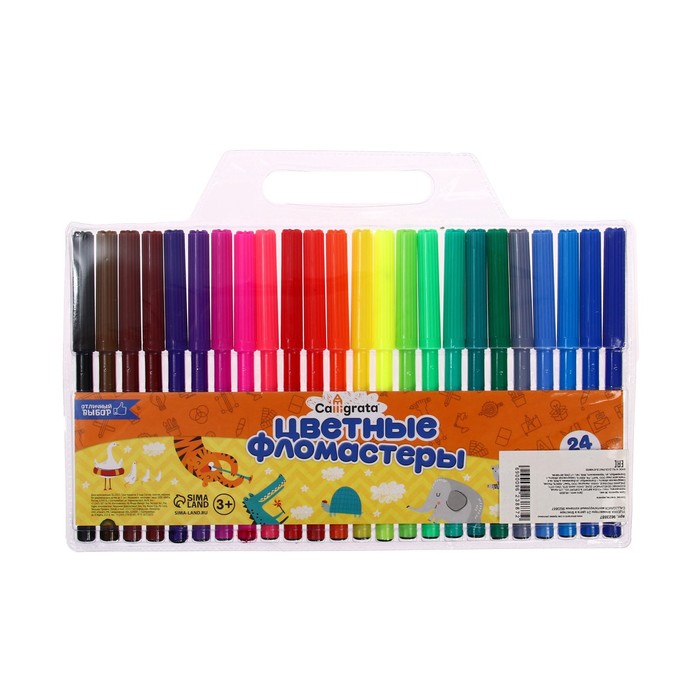 Набор фломастеров содержит 24 ярких и насыщенных цвета. Вентилируемый колпачок обеспечивает безопасное рисование для ребенка . Идеально подходят для детей от 3-х лет и для тех, кто только начинает свой творческий путь. Фломастеры состоят из пластика, чернил. Упаковка представлена в виде PVC пакета. Благодаря фломастерам Вы сможете воплотить все свои творческие фантазии в реальность.