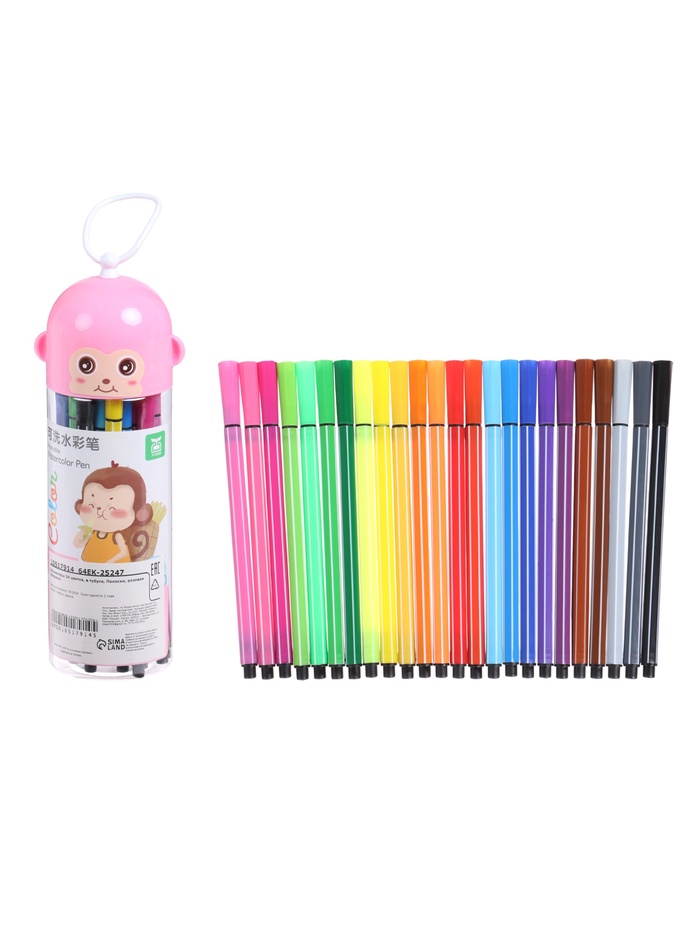 УЦЕНКА Фломастеры 24 цветов, в тубусе, Полоски, розовая Обезьяна