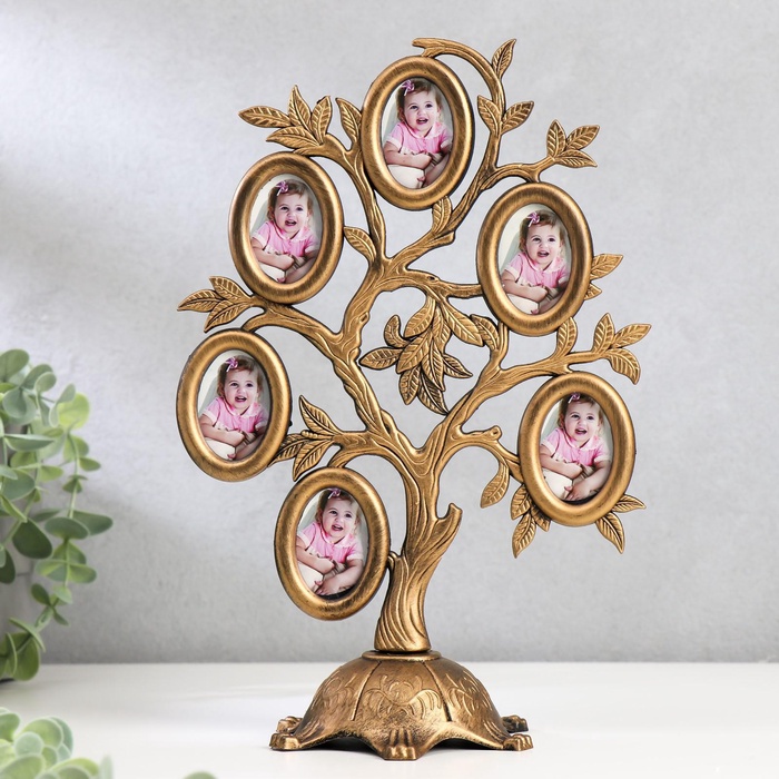 УЦЕНКА Фоторамка - коллаж на 6 фото 4.5×3 см «Дерево с плодами», пластик под т.золото, 26.5×19.5×11 см