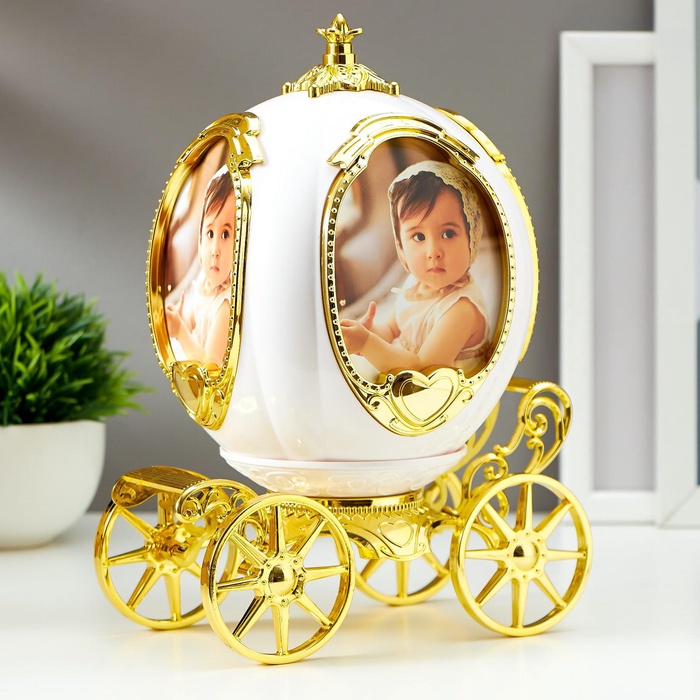 УЦЕНКА Фоторамка пластик 9×7.5 см музыка «Карета» белая с золотом 23×18×12.5 см