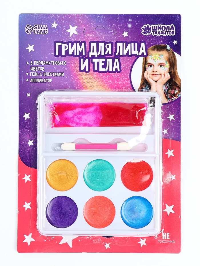 УЦЕНКА Грим для лица и тела 6 перламутровых цветов + гель с блестками, аппликатор