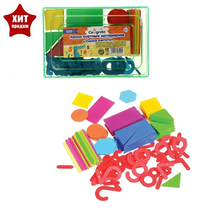 УЦЕНКА Касса цифр и счетных материалов «Учись считать», 132 элемента, пластик, МИКС