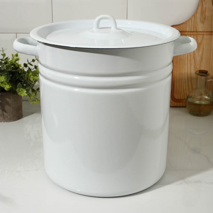 УЦЕНКА Кастрюля эмалированная, 12 л, d=26 см, цилиндрическая, нет крышки, белая