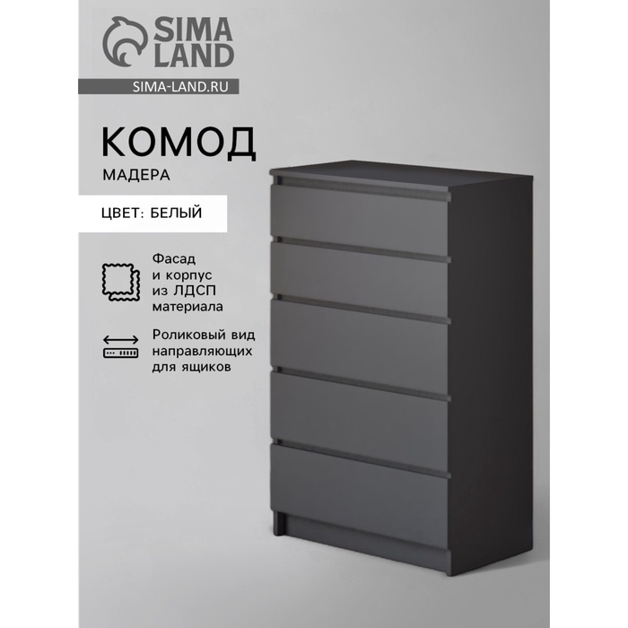 - Вместительность: Несмотря на компактные размеры, комод предлагает достаточно места для хранения благодаря пяти ящикам.