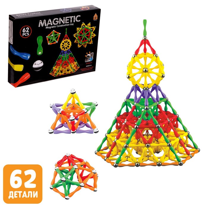 УЦЕНКА Конструктор магнитный, 62 детали, МИКС