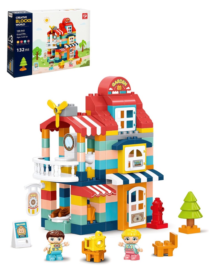 Набор конструктора порадует коллекционеров и любителей собирать модели домиков. Из 132 деталей у ребёнка получится собрать 2 варианта загородной виллы! Постройте домик, расставьте аксессуары и поселите туда маленьких персонажей. Сборка конструктора и игра с виллой получатся очень увлекательными!