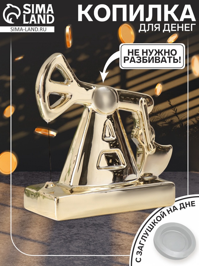 - Цвет: золотистый, что придает копилке элегантный и стильный вид.