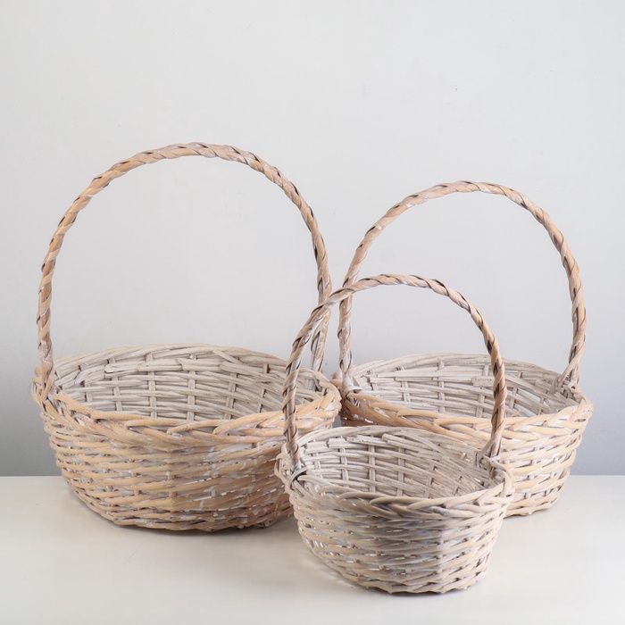 )Плетёный набор корзин овальной формы, из цельного ивового прута с продольной ручкой. Имеют прочное основание и боковины.