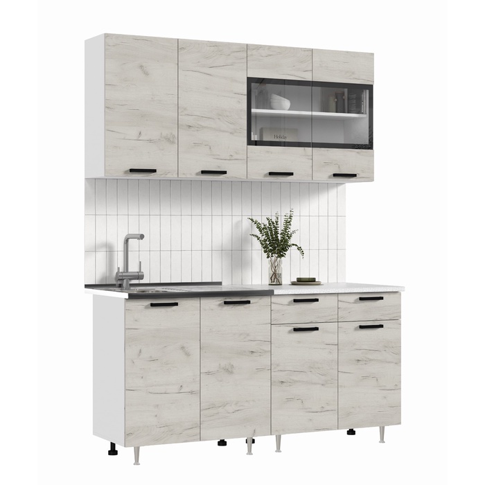 УЦЕНКА Кухня Рио NEW 1,6м, Дуб Крафт Белый/Антарес столешница