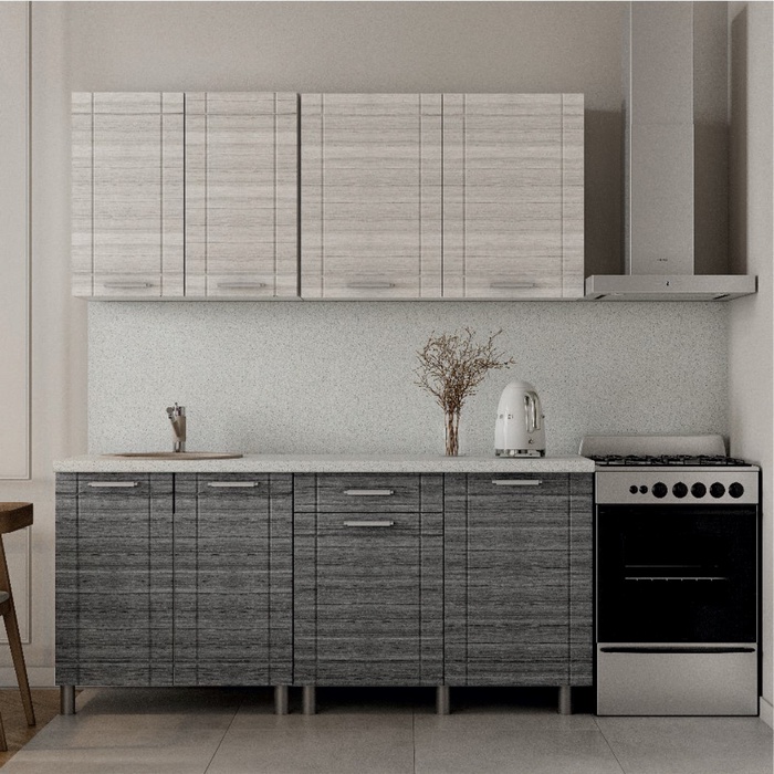 УЦЕНКА Кухонный гарнитур Бомбей, 1800×600, Белый/Сандал белый, Сандал серый/Антарес