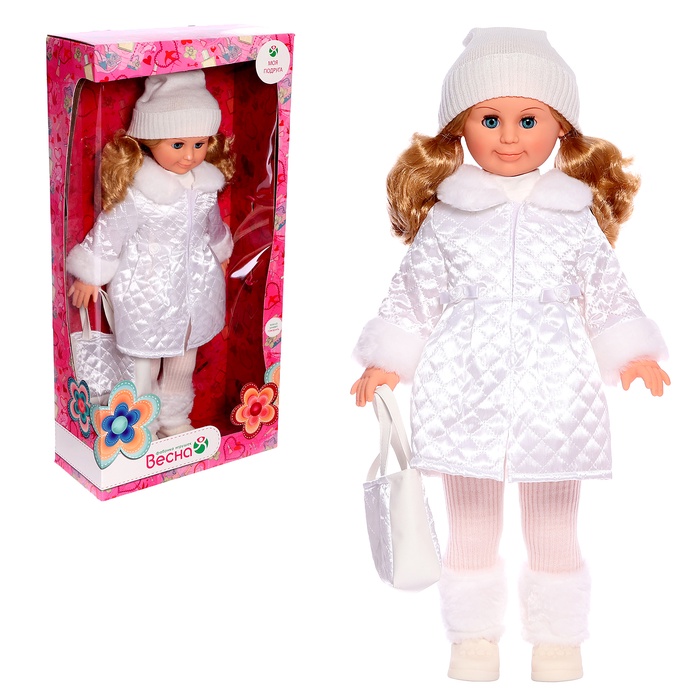 Милана — методическая кукла, с которой девочка научится одеваться по погоде и заботиться о близких. На белокурой моднице надеты вязаные джемпер, шапка и колготки, куртка с манжетами и пушистым воротником. На ножках красуются туфельки, которые вместе с гетрами из искусственного меха выглядят как сапожки. Милана — самая высокая в линейке торговой марки «Весна-Киров» и отлично подойдёт в качестве куклы-подружки.