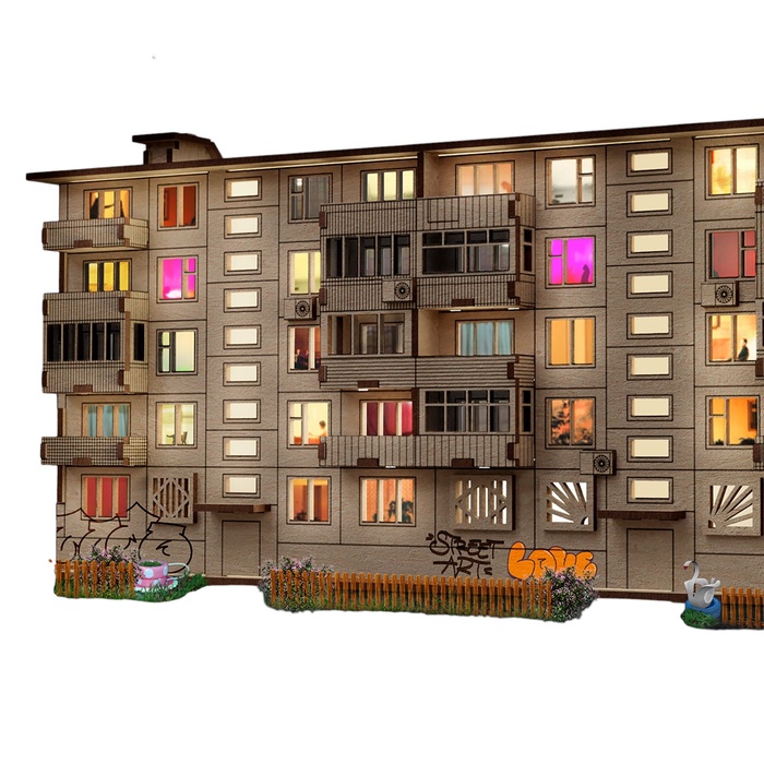 Деревянный конструктор «Панелька» состоит из 93 деталей. Это увлекательная развивающая игрушка для детей от 6 лет. Конструктор позволяет построить небольшой многоквартирный домик, развивая у ребёнка пространственное мышление, логику и мелкую моторику.