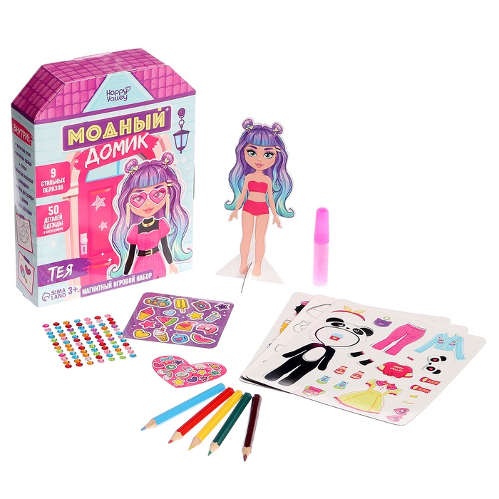 Магнитная игра «Модный домик: Лили» станет увлекательным занятием для детей, любящих создавать свои модные образы и придумывать истории. В комплект входит кукла, восемь стильных нарядов, а также аксессуары и украшения для дополнительного декора. Все элементы выполнены на магнитах, что позволяет легко менять одежду и аксессуары, создавая новые образы для куклы.